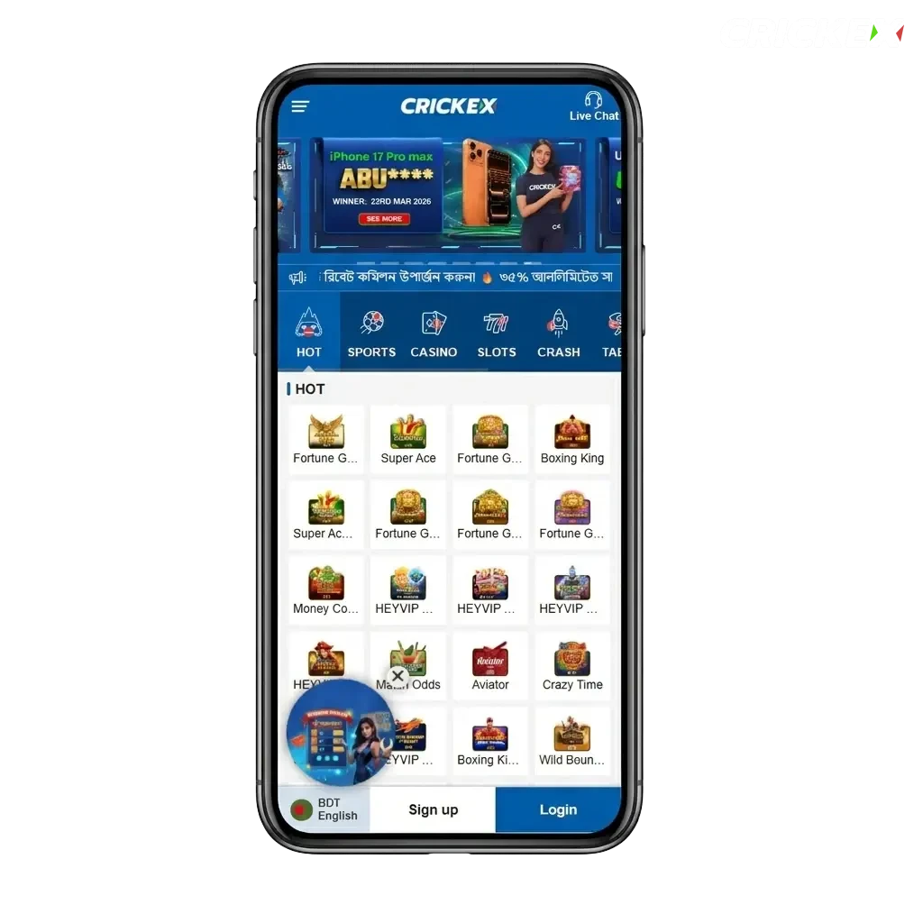 The Crickex app is built for speed, reliability, and ease of access. Indian players choose it for its support of local payment methods, a wide game library, and a welcome bonus that covers both casino and sports. The app loads quickly on mid-range Android phones, and the iOS version is equally responsive.