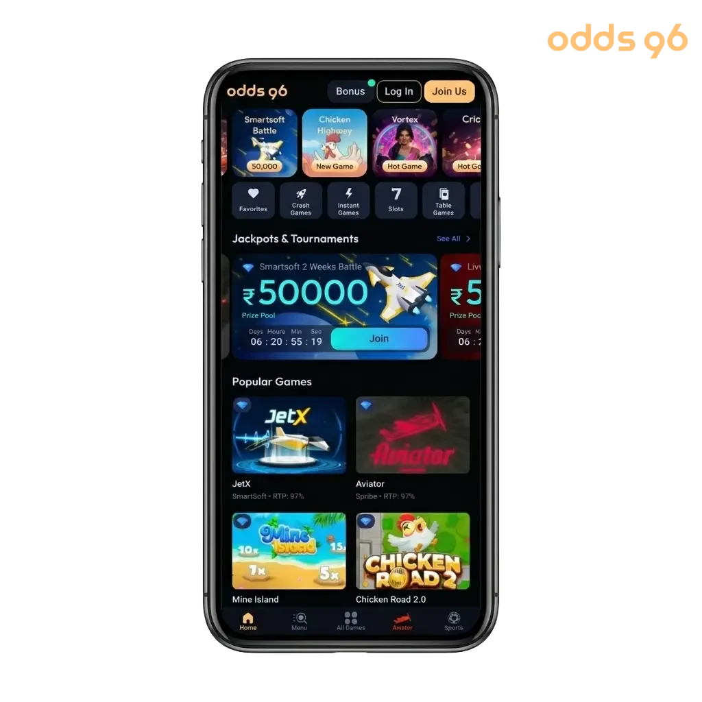 Odds96 lets you play Aviator on the go, wherever you are in India. The platform supports both Android and iOS, so you can get started regardless of the device in your hand. Every feature available on desktop, including live bets, bonus tracking, and account management, is fully accessible through the mobile app. The experience is consistent, responsive, and built for everyday use.
